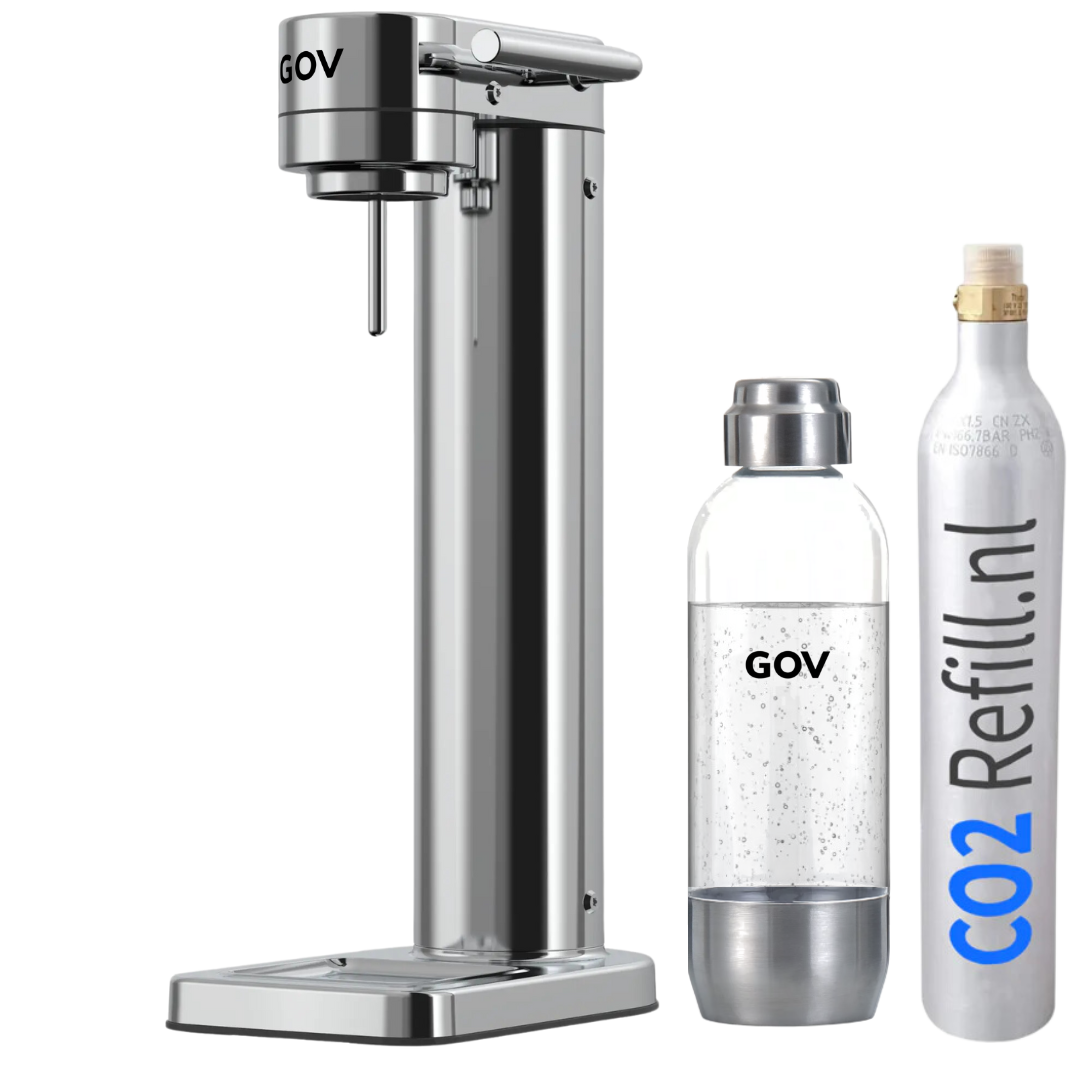Hast du das nicht? Dann müssen Sie eine CO2-Flasche bestellen. Es empfiehlt sich, insgesamt drei Zylinder zu haben, einen für den Wassersprudler und zwei zum Austauschen. Sie können bestellen, indem Sie HIER klicken