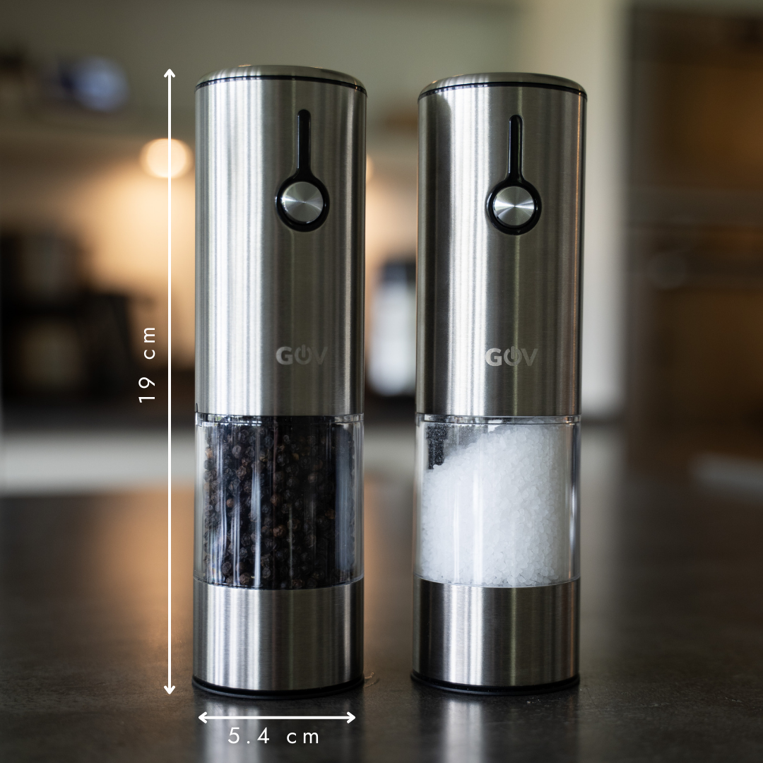 De molens zijn elektrisch. Door op de knop aan de voorkant te klikken, gaat de molen malen. Hierdoor is het met één hand te bedienen en het kost geen kracht. Voor mensen met artrose is dit een echte uitkomst.