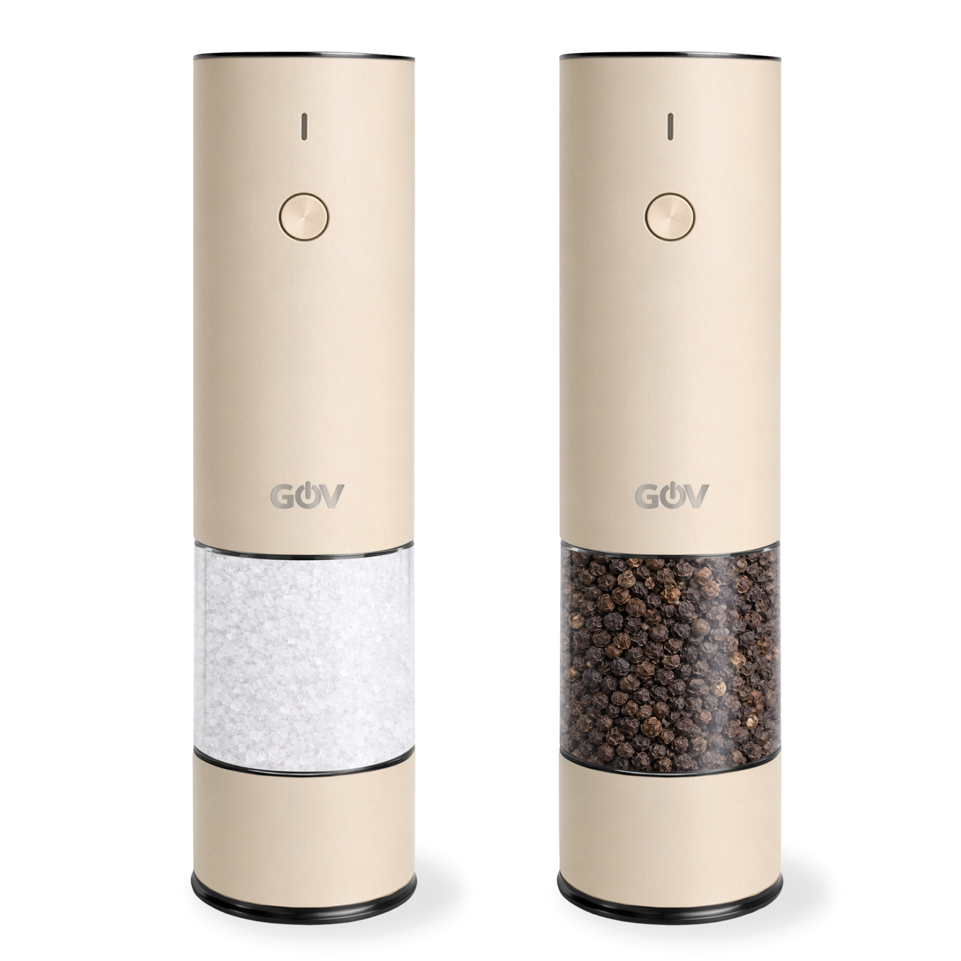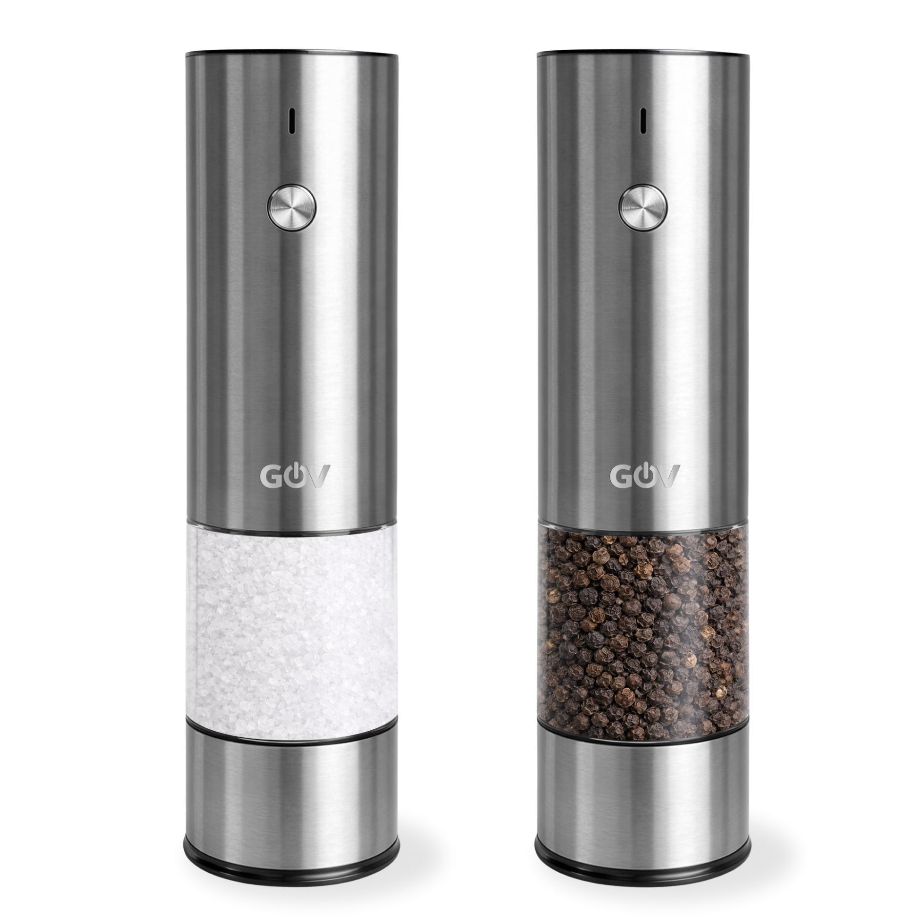 Het GOV RVS Regular XL | Peper- en Zoutstel Elektrisch maalt met gemak jouw kruiden! Het peper- en zoutstel is elektrisch, waardoor met één druk op de knop gemaald kan worden. Hiernaast zijn de molens oplaadbaar, waardoor batterijen overbodig zijn. Met vijf verschillende maalstanden kan je (droog) zout en peper vermalen naar jouw wensen. Kenmerkend van GOV is de roestvrijstalen behuizing in een minimalistisch uiterlijk, uitgevoerd in rustige kleuren.
