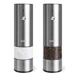 Het GOV RVS Regular | Peper- en Zoutstel Elektrisch maalt met gemak jouw kruiden! Het peper- en zoutstel is elektrisch, waardoor met één druk op de knop gemaald kan worden. Hiernaast zijn de molens oplaadbaar, waardoor batterijen overbodig zijn. Met vijf verschillende maalstanden kan je (droog) zout en peper vermalen naar jouw wensen. Kenmerkend van GOV is de roestvrijstalen behuizing in een minimalistisch uiterlijk, uitgevoerd in rustige kleuren. De GOV RVS Regular | Peper- en Zoutstel Elektrisch zal je vaak helpen om jouw gerechten te perfectioneren!